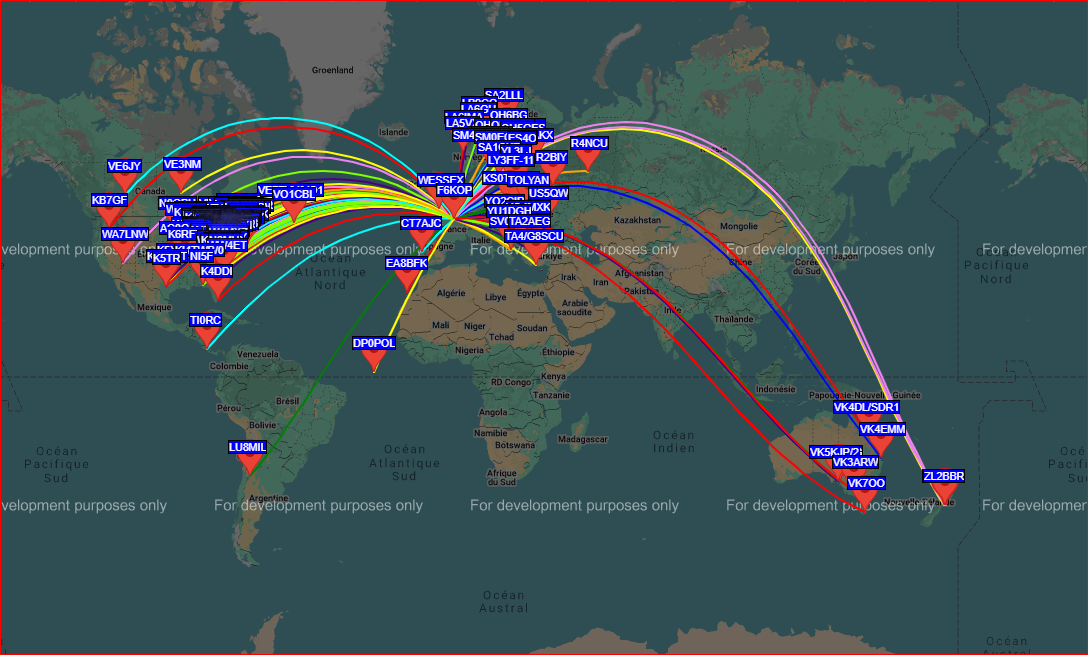 Vie du club WSPR a F6KOP 26 avril 2026 / Salut les KOPains Hier soir, vers 18h30 (heure locale), nous avons remis en route notre WSPR avec quelques milliwatts, une cinquantaine de mètres de coaxial de 6 mm et une antenne verticale 1/4 d’onde à 5 mètres du sol. Et voilà le résultat après quelques heures !